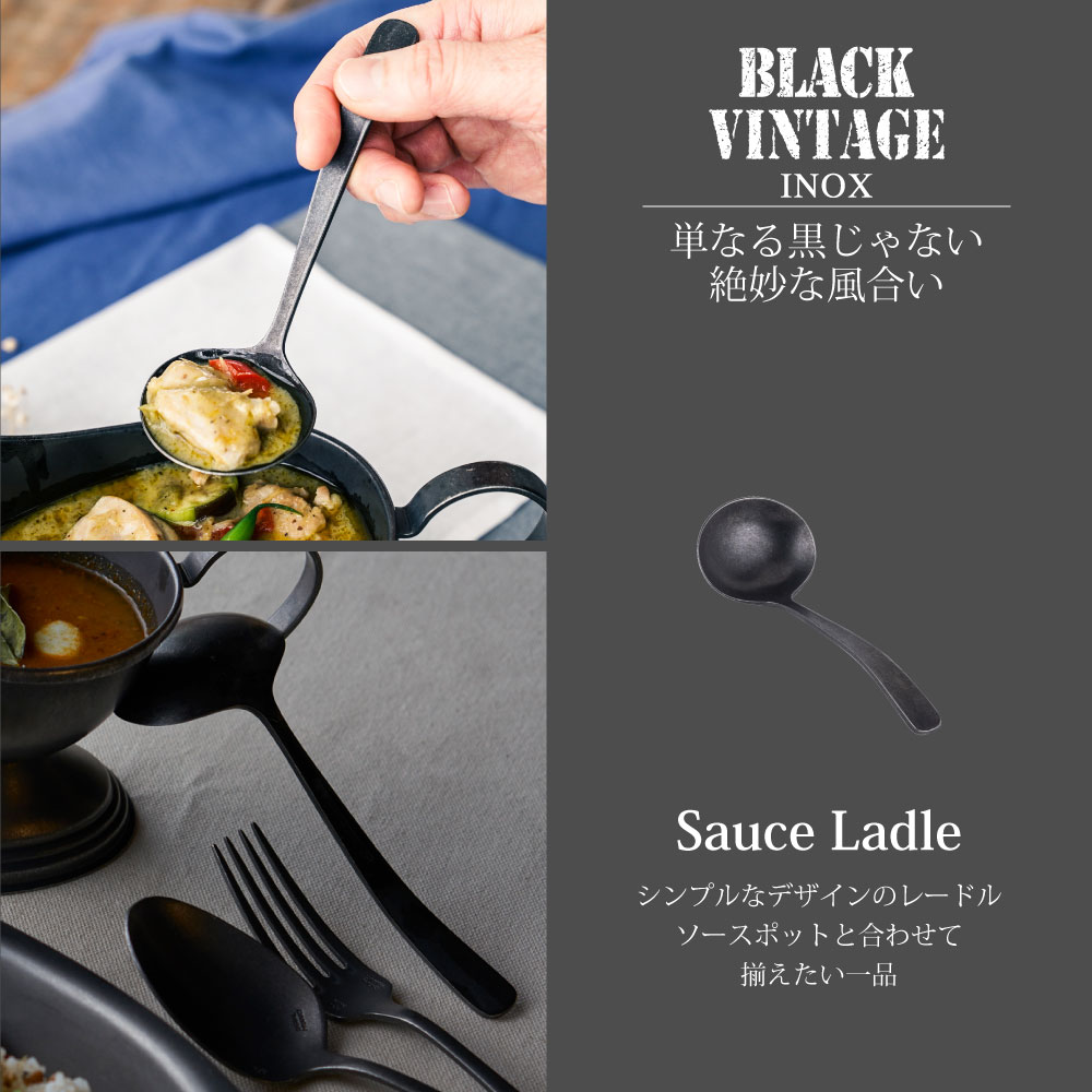 【BLACK VINTAGE INOX】 レストランの本格的なカレーの雰囲気を演出できるカレー用のレードルです。ソースポットと組み合わせればいつものカレーも一気に格上げされます。