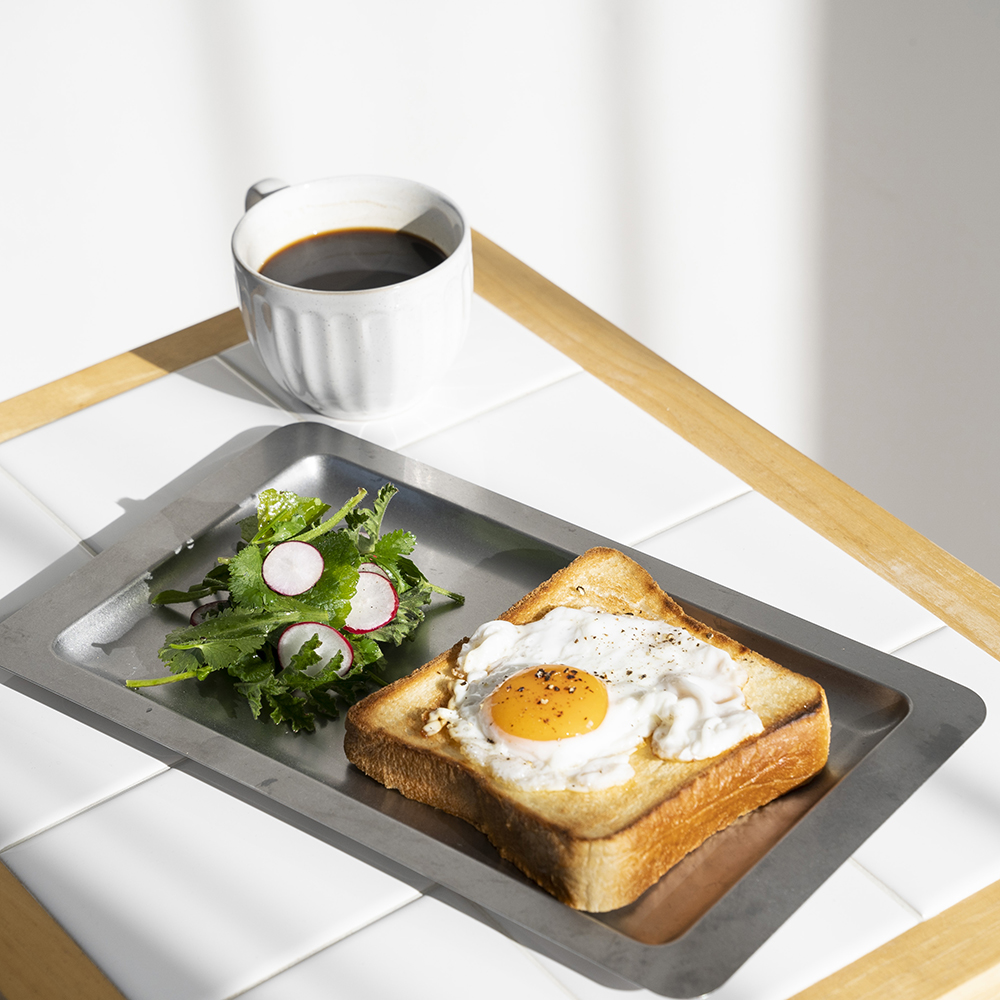 丈夫で使いやすいシンプルなステンレス製のセットトレーです。パーティー用のプレートとしても重宝します。