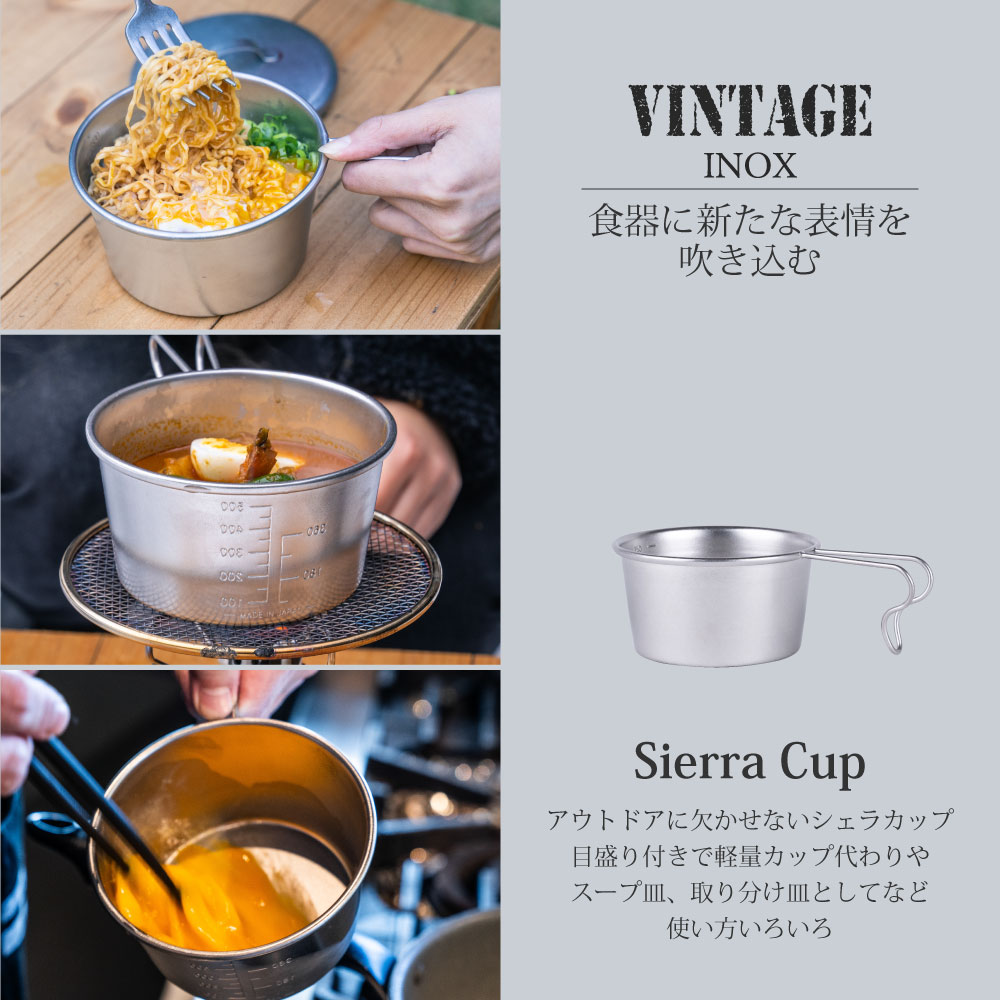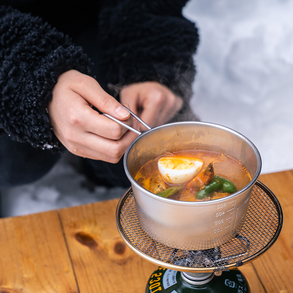アウトドアで大活躍のシェラカップ。目盛付きなので、調理の際の計量カップとしても使えるだけでなく、コンパクトなサイズはスープカップやコーヒーカップ、取り分け皿など多用途に使えます。もちろんスタッキングも可能です!