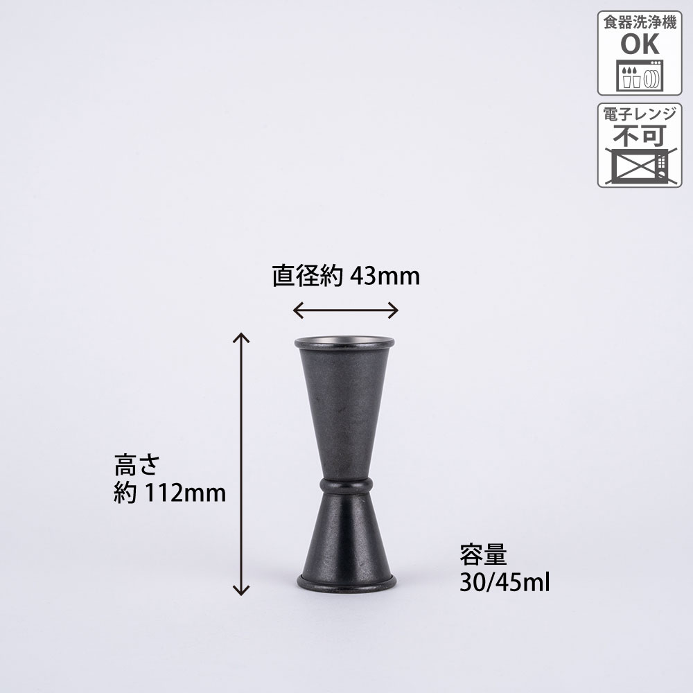 カクテル作りの計量に欠かせないメジャーカップ。リキュールやシロップ、レモンジュースなどを量るカクテル作りに欠かせないアイテムです。バーテンダーも使用するプロ仕様。上下で15ml/30ml(1oz)を量ることができます。カクテルの分量に多い45mlの計量は上下1杯ずつ計量すればOK。カップが上下の2つと明確なので、量り間違いのない素早い計量が可能です。カクテル作りにおいて分量をしっかり量ることは美味しさのキモ!日々の晩酌がハイボールなど種類が決まっている方にとっては、もってこいですよ。
