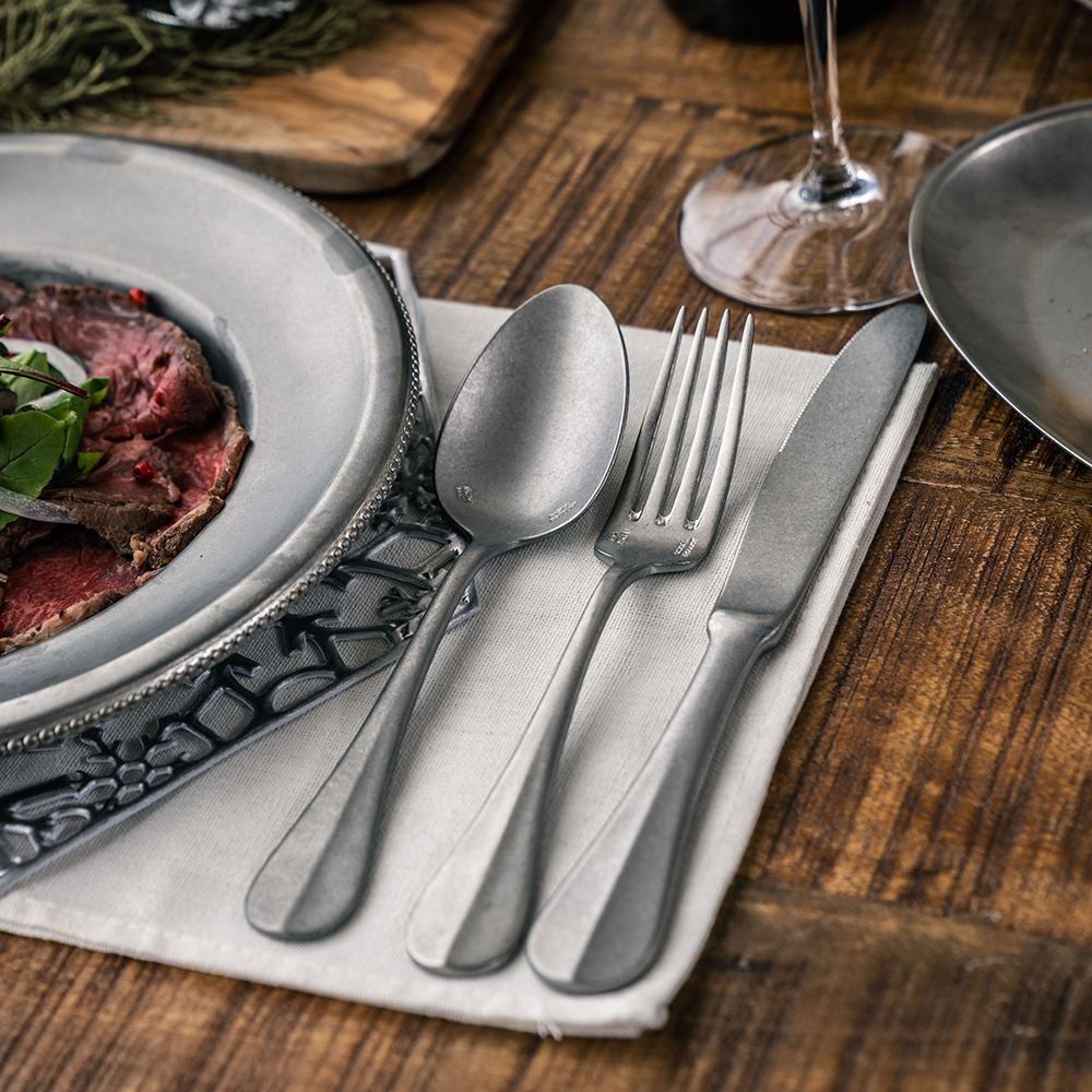 カジュアルからフォーマルまで幅広いシーンにあわせやすいシンプルなカトラリーシリーズ。すっきりとした飽きのこないデザインと、さりげなく計算された使いやすさが特徴的です。柄部のセンターラインがアクセントとなっており、クラシックでエレガントな雰囲気を演出するので、普段使いからおもてなしのシーンまで幅広く活躍すること間違いなしのアイテムです。シリーズで揃えてみてはいかがでしょう。デザイン性だけでなく食器洗浄機対応と実用性も兼ね備えています。ティースプーンは、カップに添えても邪魔をせず、デザインを引き立てます。