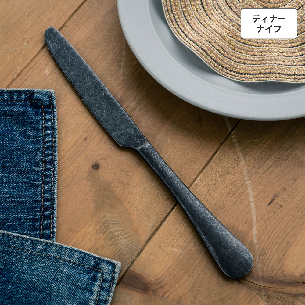 ベーシックを極めシンプルで滑らかなカーブが特徴のオールドイングリッシュシリーズ。手に馴染み機能美を感じる逸品で日常の暮らしに寄り添い、カジュアルにもフォーマルにも使える実力派。持ち手裏面のさりげないデザインはシンプルなデザインのアクセントに。おもてなしにも十分対応できる高品質なカトラリーシリーズ。オールドイングリッシュのディナーナイフはお肉やお魚といったメインディッシュを切り分ける際に活躍。手馴染みの良いグリップ感は食材を捉え綺麗にカット。存在感がありながらも主張しすぎないデザインは、メイン料理や華やかなディッシュの名バイプレーヤーに。重厚で無骨なブラックは洗練された雰囲気を醸し出し、料理を引き立て、テーブルコーディネートの良いアクセントに。デザイン性だけでなく食器洗浄機対応と実用性も折り紙付き。