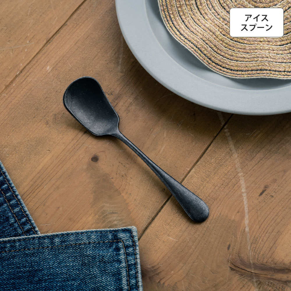 ベーシックを極めシンプルで滑らかなカーブが特徴のオールドイングリッシュシリーズ。手に馴染み機能美を感じる逸品で日常の暮らしに寄り添い、カジュアルにもフォーマルにも使える実力派。持ち手裏面のさりげないデザインはシンプルなデザインのアクセントに。おもてなしにも十分対応できる高品質なカトラリーシリーズ。アイスクリームスプーンは口当たりが良く、アイスクリームに刺さりやすく、カップの底まできれいにすくえます。重厚で無骨なブラックは洗練された雰囲気を醸し出し、料理を引き立て、テーブルコーディネートの良いアクセントに。デザイン性だけでなく食器洗浄機対応と実用性も折り紙付き。