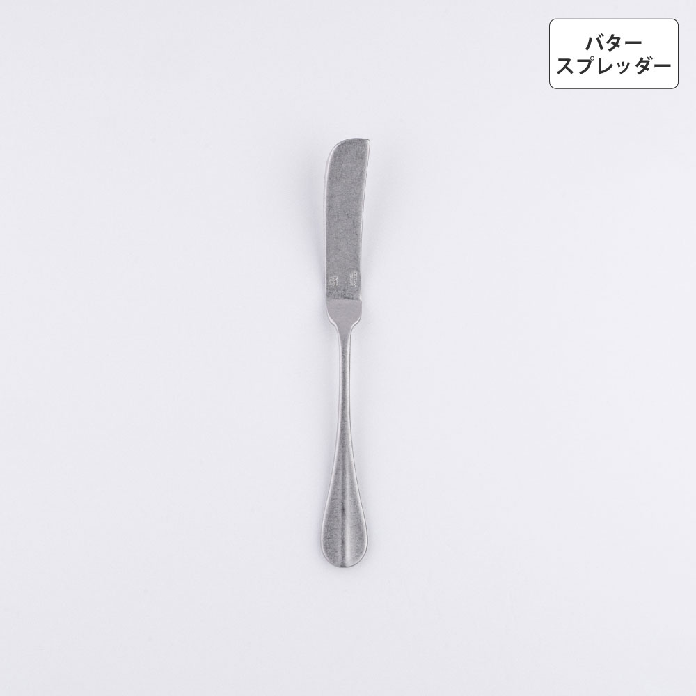 カジュアルからフォーマルまで幅広いシーンにあわせやすいシンプルなカトラリーシリーズ。すっきりとした飽きのこないデザインと、さりげなく計算された使いやすさが特徴的です。柄部のセンターラインがアクセントとなっており、クラシックでエレガントな雰囲気を演出するので、普段使いからおもてなしのシーンまで幅広く活躍すること間違いなしのアイテムです。シリーズで揃えてみてはいかがでしょう。デザイン性だけでなく食器洗浄機対応と実用性も兼ね備えています。バタースプレッダーは先端が丸く、持ち手から刃にかけての段差がポイント。パンとの密着度が高いので、ストレスなくバターやジャムを全体的に塗ることができます。