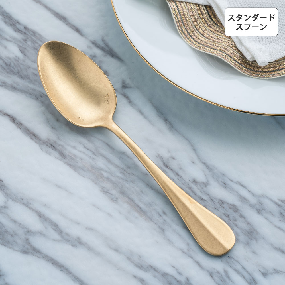 カジュアルからフォーマルまで幅広いシーンにあわせやすいシンプルなカトラリーシリーズ。すっきりとした飽きのこないデザインと、さりげなく計算された使いやすさが特徴的です。柄部のセンターラインがアクセントとなっており、クラシックでエレガントな雰囲気を演出するので、普段使いからおもてなしのシーンまで幅広く活躍すること間違いなしのアイテムです。バゲットクラシックシリーズのスタンダードスプーンはディナースプーンよりもひとまわり小さく、オールマイティーにお使いいただけるサイズ感です。食事用にはもちろん、大人数が集まるパーティーのドレッシングやトッピングのスクープ用として複数あっても重宝します。