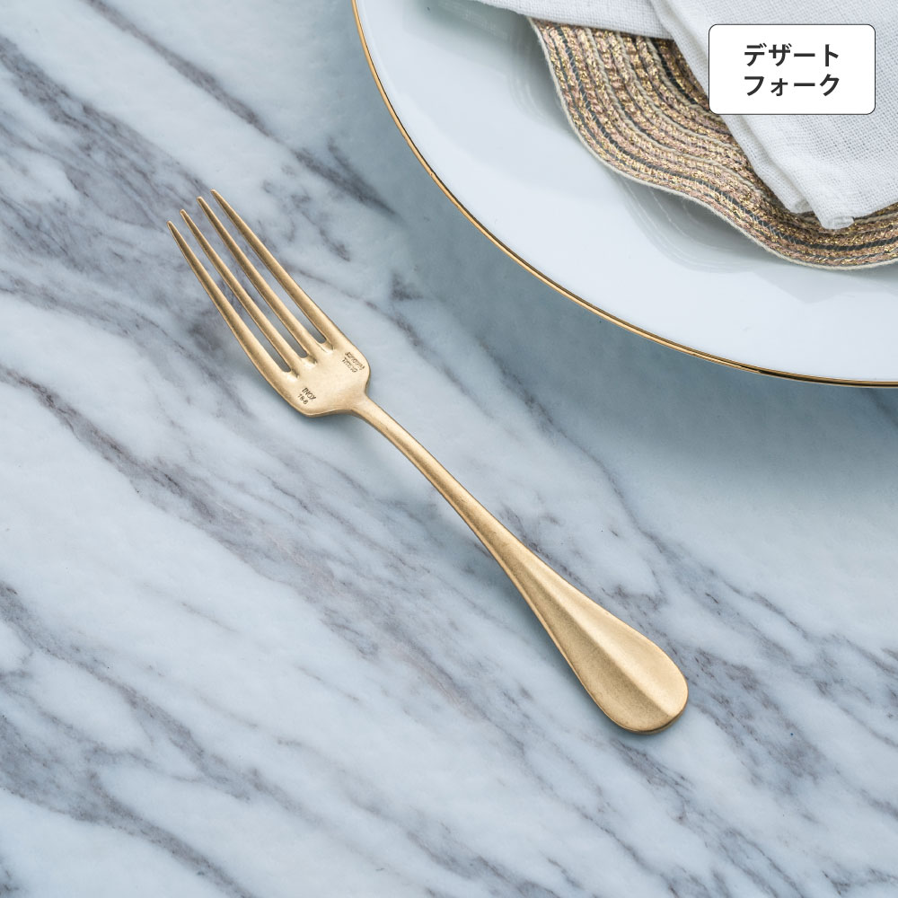 カジュアルからフォーマルまで幅広いシーンにあわせやすいシンプルなカトラリーシリーズ。すっきりとした飽きのこないデザインと、さりげなく計算された使いやすさが特徴的です。柄部のセンターラインがアクセントとなっており、クラシックでエレガントな雰囲気を演出するので、普段使いからおもてなしのシーンまで幅広く活躍すること間違いなしのアイテムです。デザートフォークは、フルーツやケーキを食べる時はもちろん、女性の手に馴染むサイズ感なので、普段の食事にお使いいただくのもおすすめです。