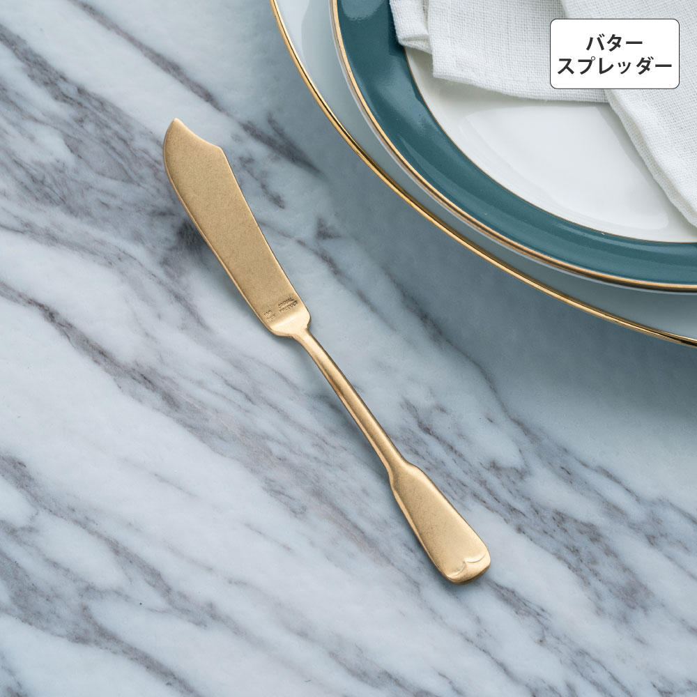 昔のヨーロッパデザインの銀食器をオマージュして作られたカトラリーシリーズ。古典的なデザインをモダンにアレンジし、日本規格のサイズ感と馴染みの良い重さで長年使いたくなる仕様にしています。リュテスクラシックシリーズのバタースプレッダーは、バターをパンに塗りやすいだけでなく、バターを取り分けたり、ジャムを塗ったりするのにもおすすめです。