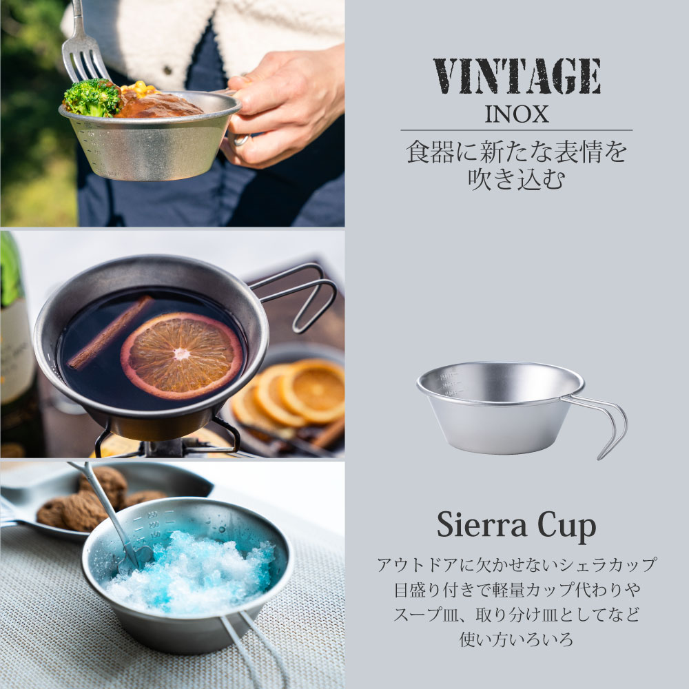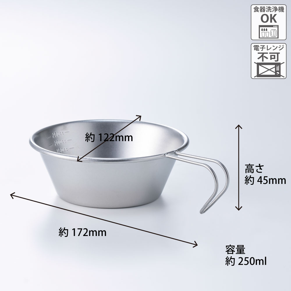 アウトドアで大活躍のシェラカップ。目盛付きなので、調理の際の計量カップとしても使えるだけでなく、コンパクトなサイズはスープカップやコーヒーカップ、取り分け皿など多用途に使えます。もちろんスタッキングも可能です!