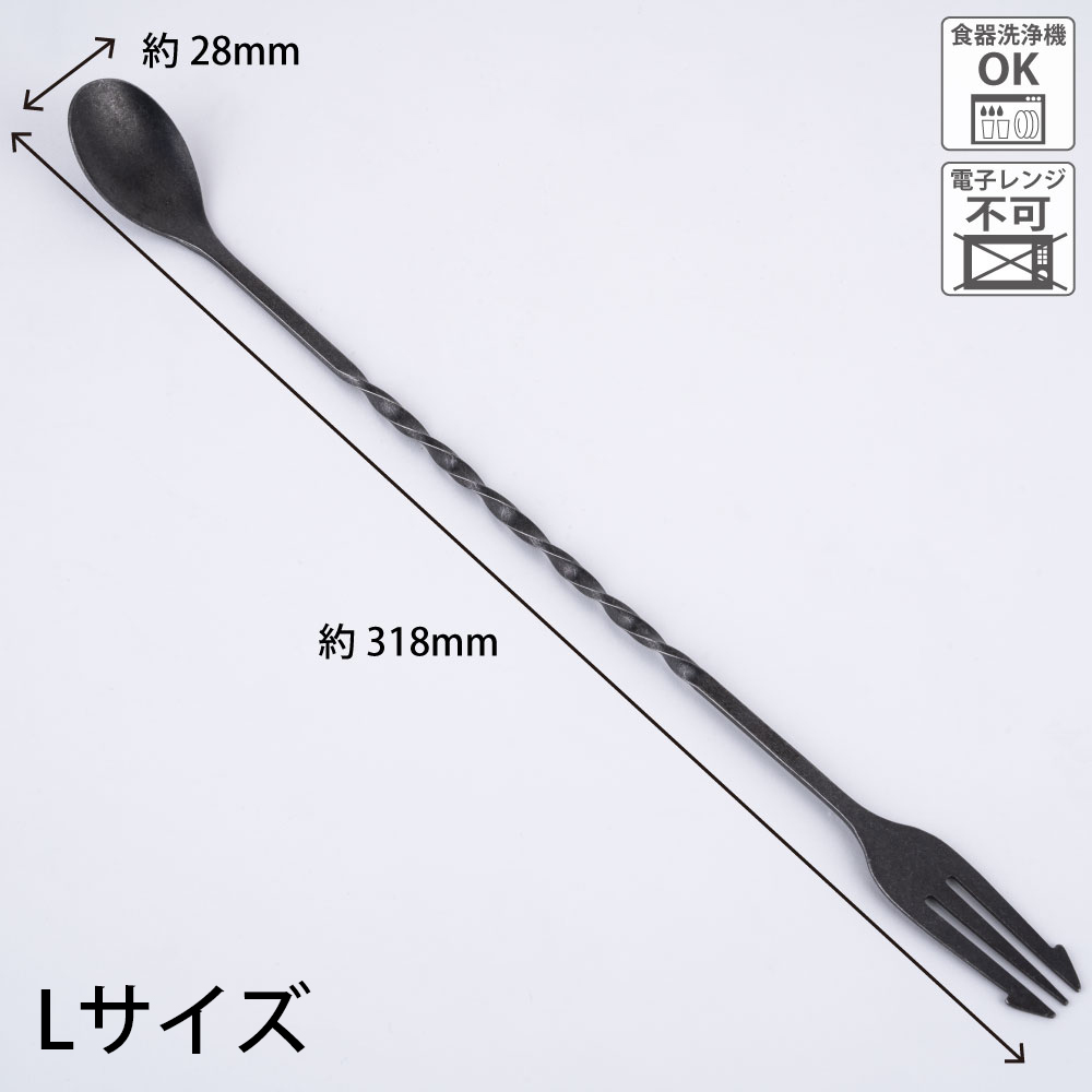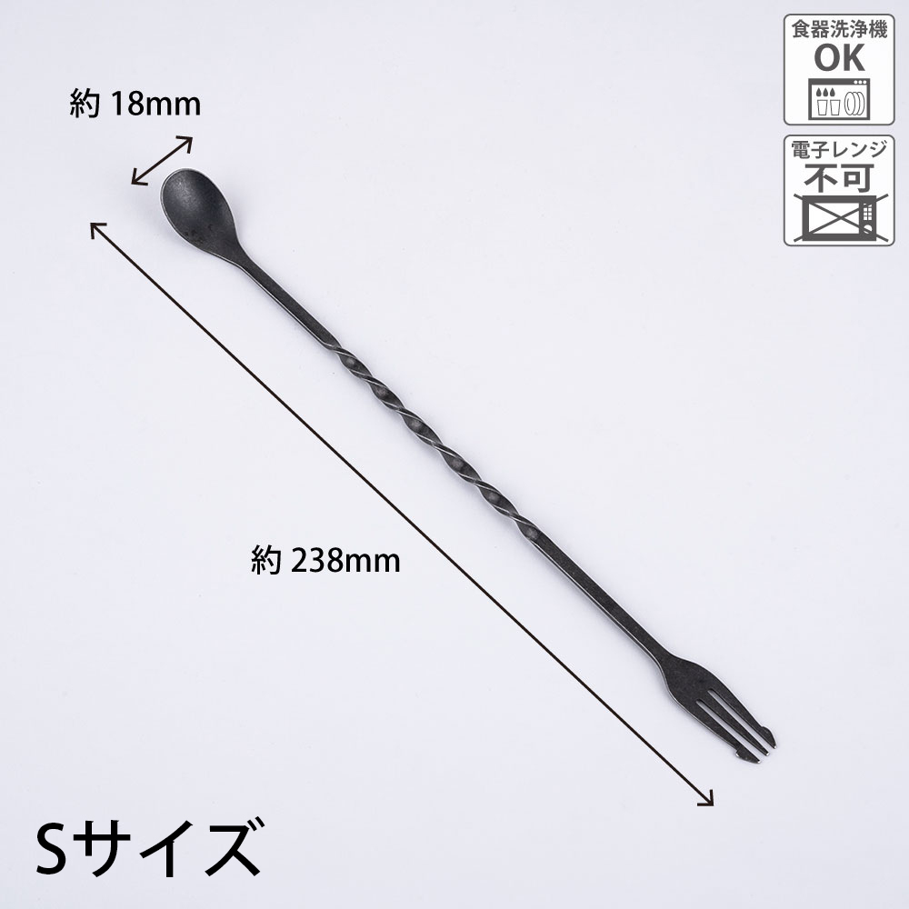カクテルシーンには欠かせない「かき混ぜる」・「計る」・「味見をする」といった3つの役割を担うバースプーンです。LとSの2サイズをご用意しています。バーテンダーも使用するプロ仕様。スプーンの先が薄くグラスと氷の間にスッと入りやすいデザインです。ショートグラスはもちろん瓶詰めのオリーブを取り出す時にも重宝するSサイズと深さのあるグラスに最適なLサイズ。