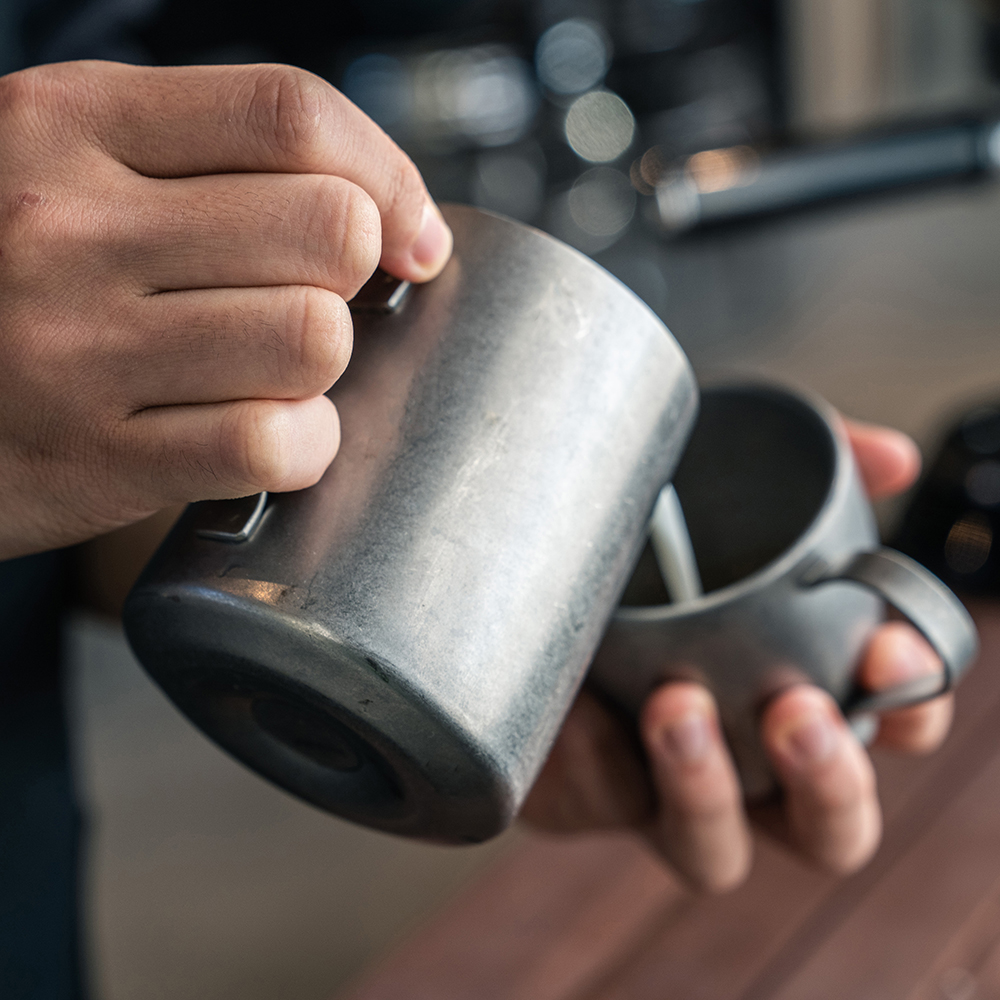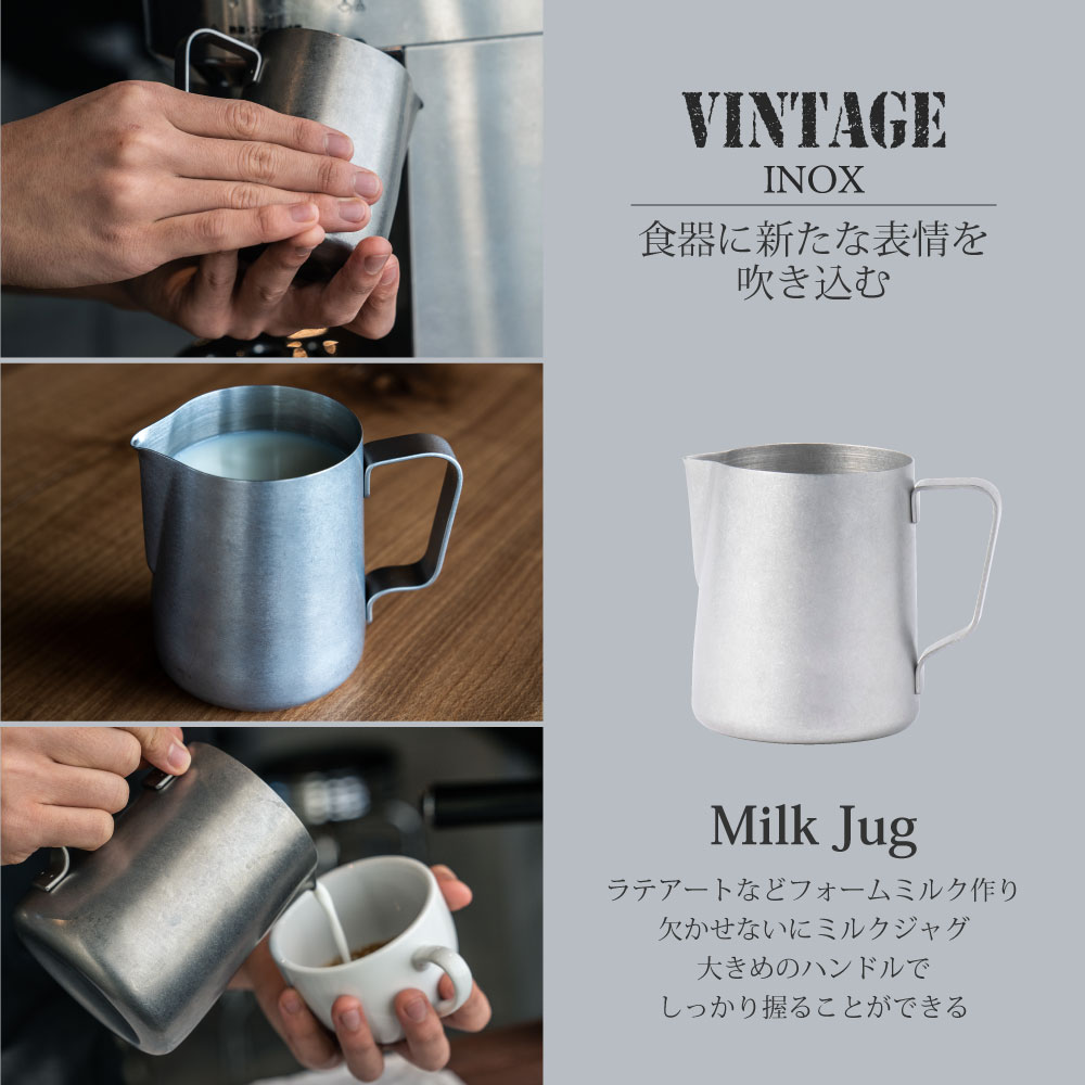 ふわふわのフォームミルクやスチームミルクを作るのに便利なミルクジャグです。細く尖った短い注ぎ口としっかり握り込むことができる大きめハンドルは繊細なアートを描くのにも使いやすくカプチーノやラテアート用としてお使い頂けます。シンプルでスタイリッシュなデザインで本格的な道具にこだわりたい方におすすめです。